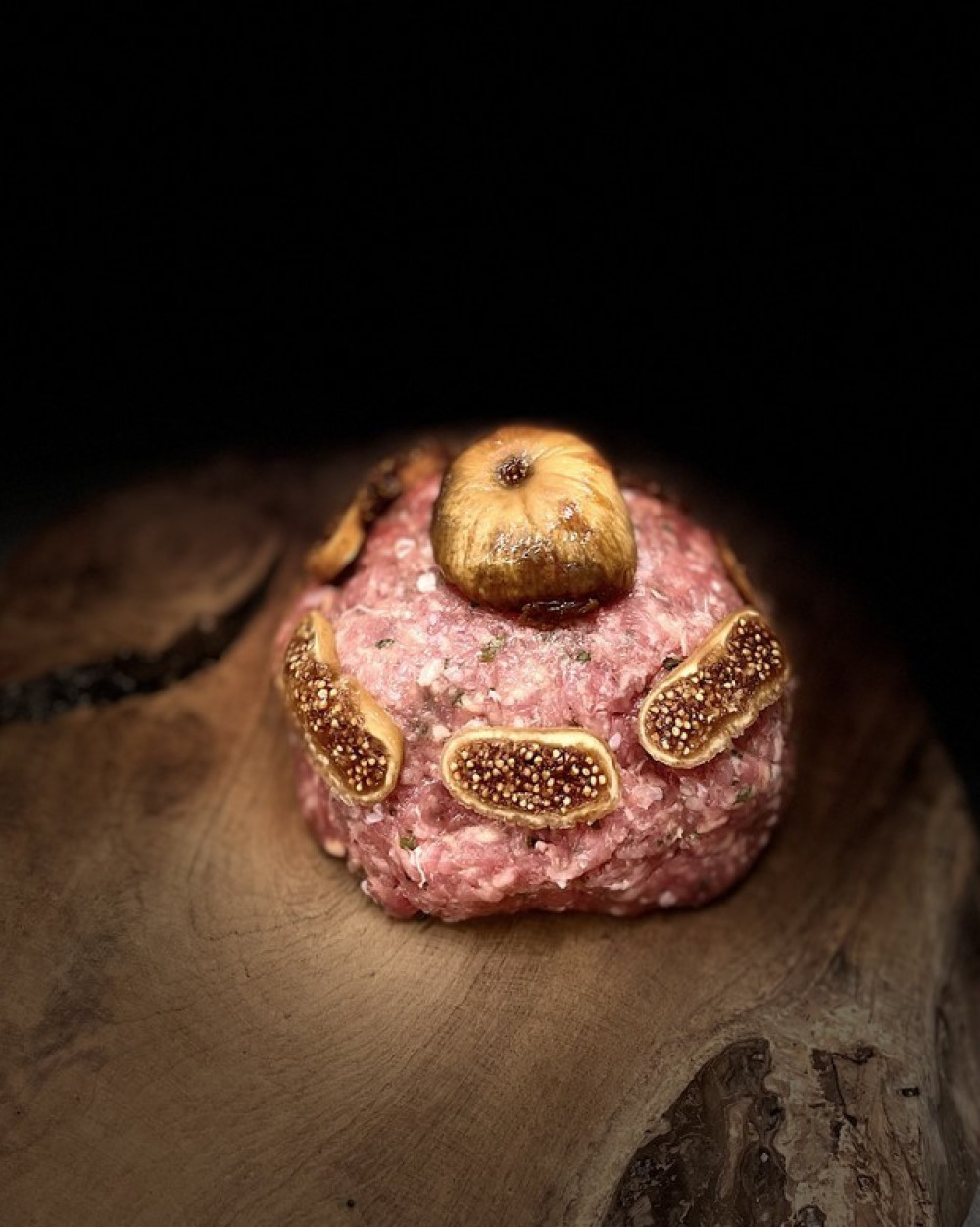 50% DE PORC 50% DE VEAU persil, sel, poivre, PORTO, épices, poudre de betterave, figues